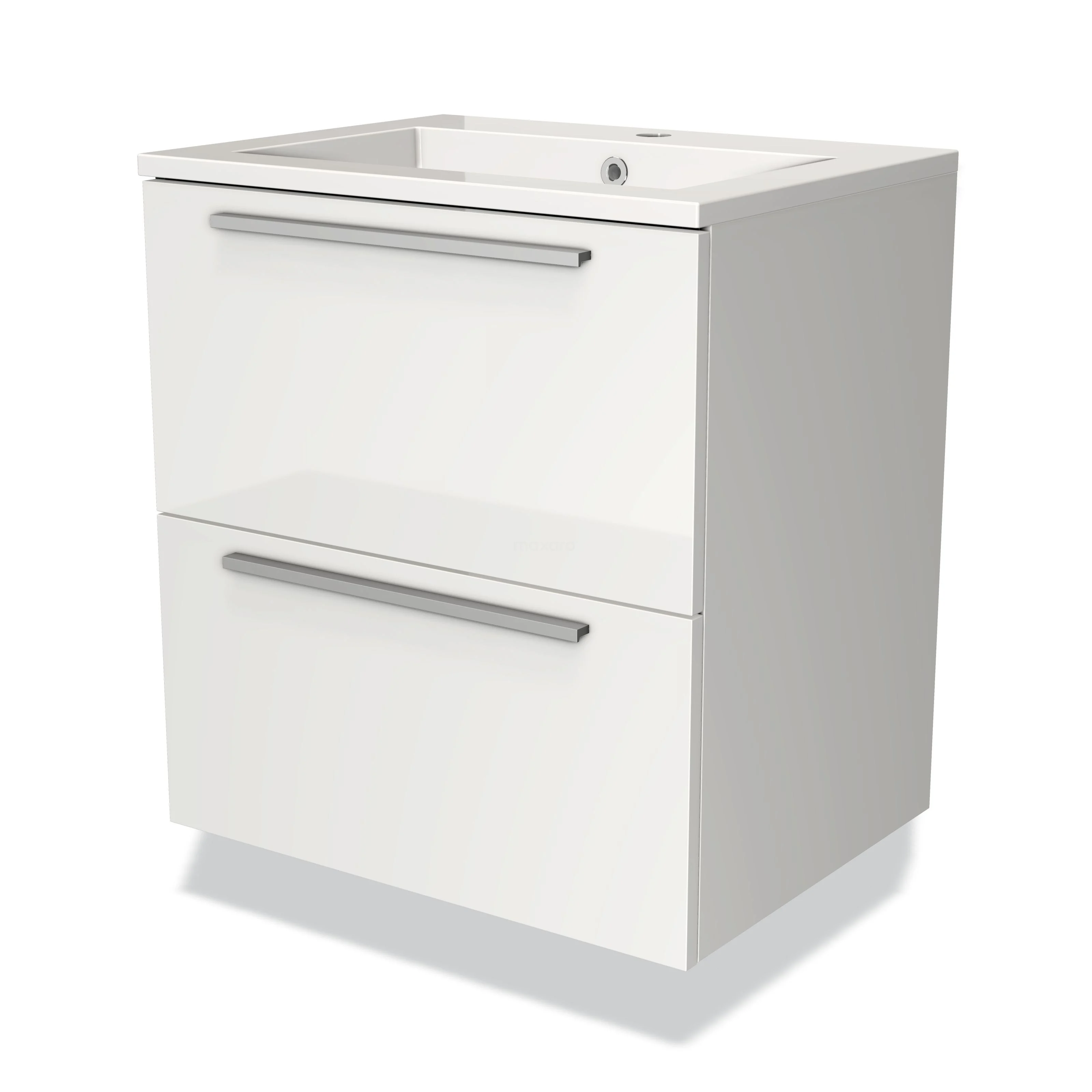 Modulo Bathroom furniture with sink | 60 cm High-gloss white Flat front Mineral marble 2 Stacked drawers