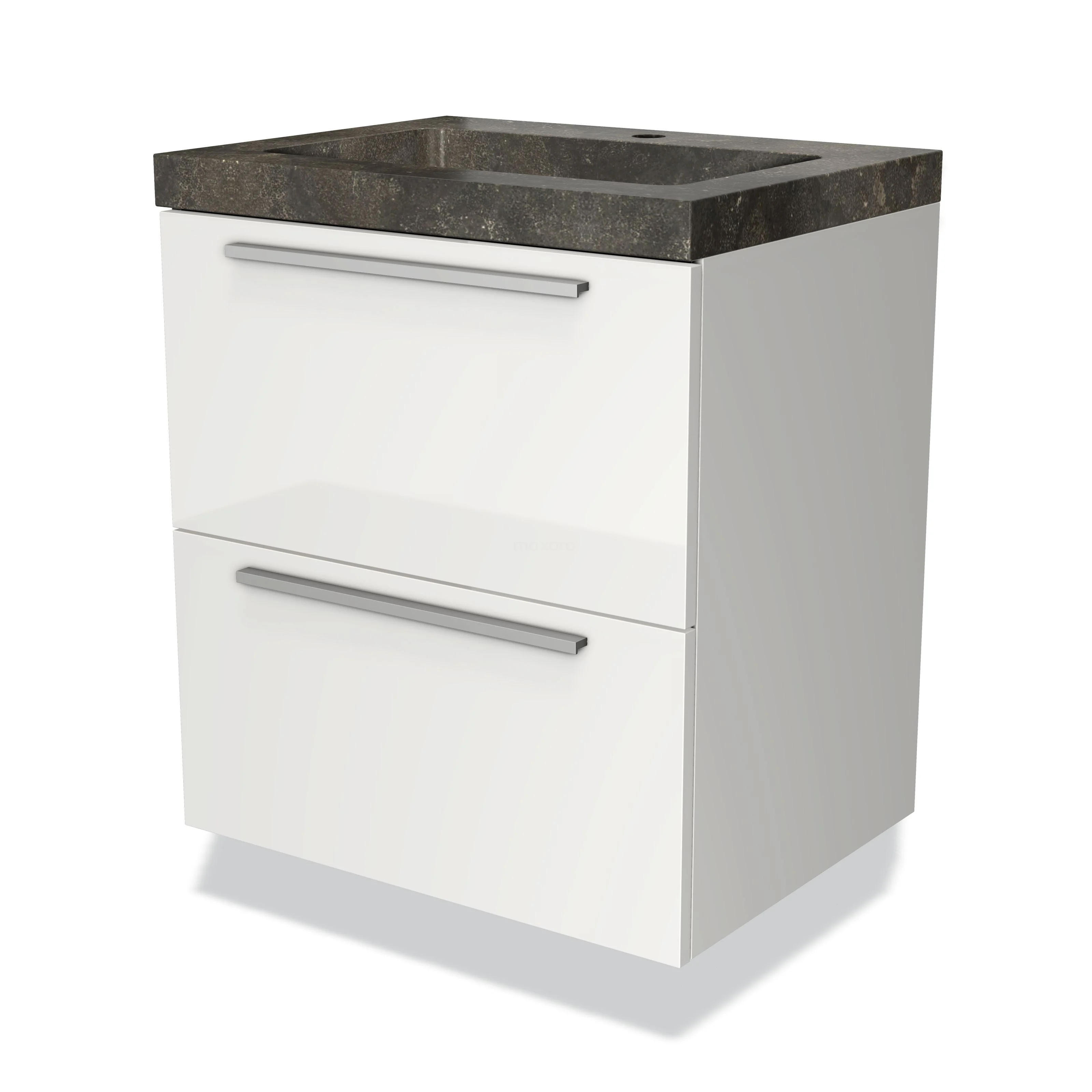Modulo Bathroom furniture with sink | 60 cm High-gloss white Flat front Natural stone 2 Stacked drawers