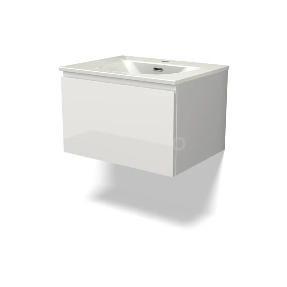 Modulo Bathroom furniture with sink | 60 cm High-gloss white Handle-less front Ceramic 1 drawer