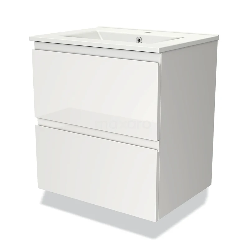Modulo Bathroom furniture with sink | 60 cm High-gloss white Handle-less front Ceramic 2 Stacked drawers
