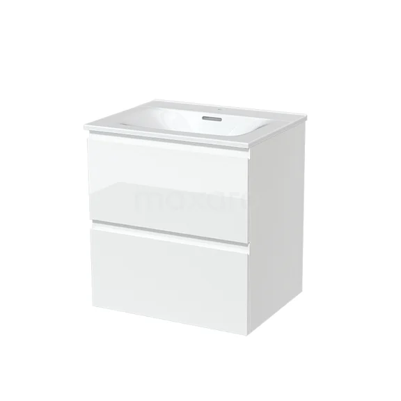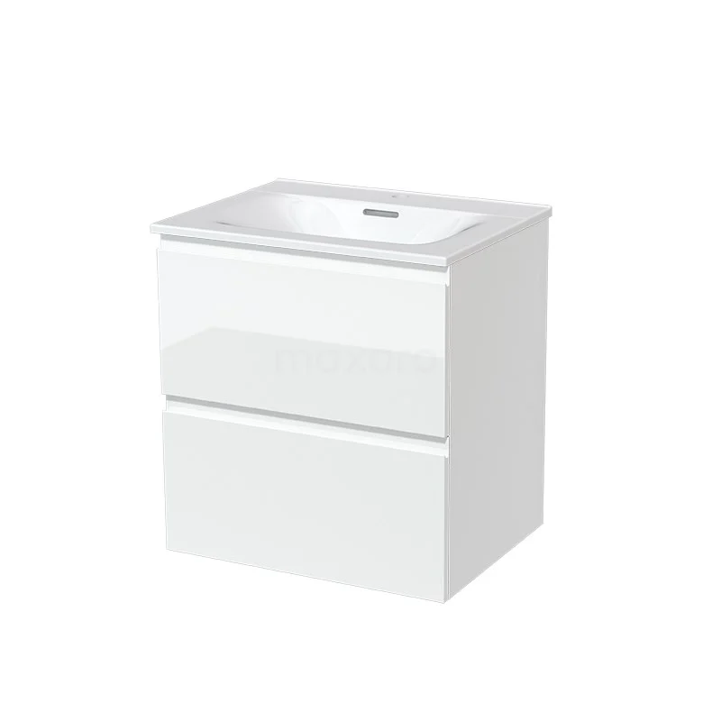 Modulo Bathroom furniture with sink | 60 cm High-gloss white Handle-less front Ceramic 2 Stacked drawers