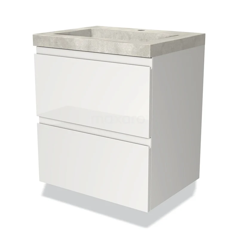 Modulo Bathroom furniture with sink | 60 cm High-gloss white Handle-less front Concrete 2 Stacked drawers