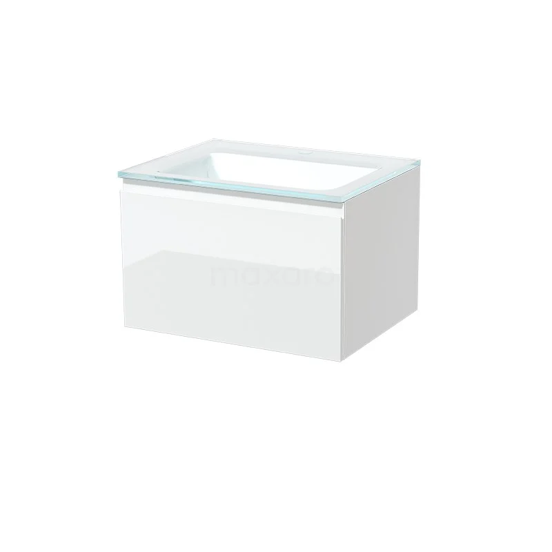 Modulo Bathroom furniture with sink | 60 cm High-gloss white Handle-less front Glass 1 drawer