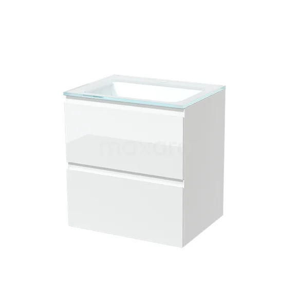 Modulo Bathroom furniture with sink | 60 cm High-gloss white Handle-less front Glass 2 Stacked drawers