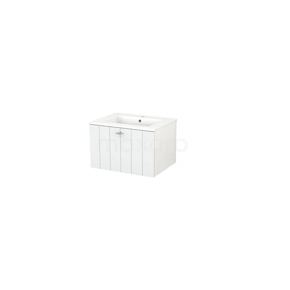 Modulo+ Bathroom furniture with sink | 60 cm High-gloss white Slat front Ceramic 1 drawer
