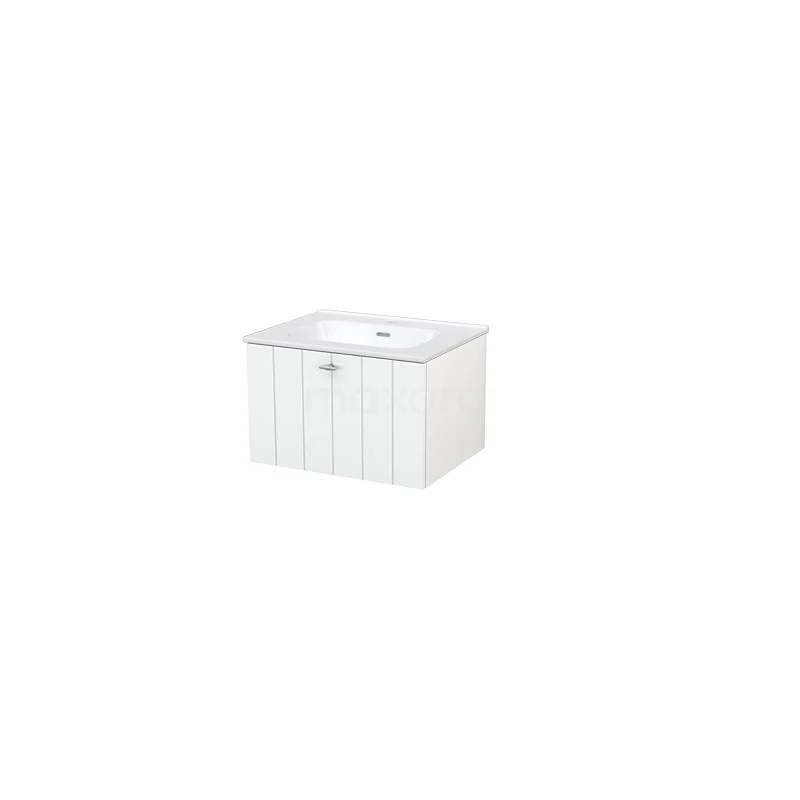 Modulo+ Bathroom furniture with sink | 60 cm High-gloss white Slat front Ceramic 1 drawer