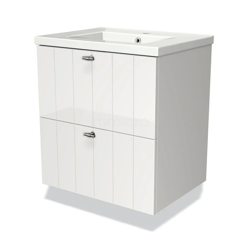 Modulo Bathroom furniture with sink | 60 cm High-gloss white Slat front Ceramic 2 Stacked drawers