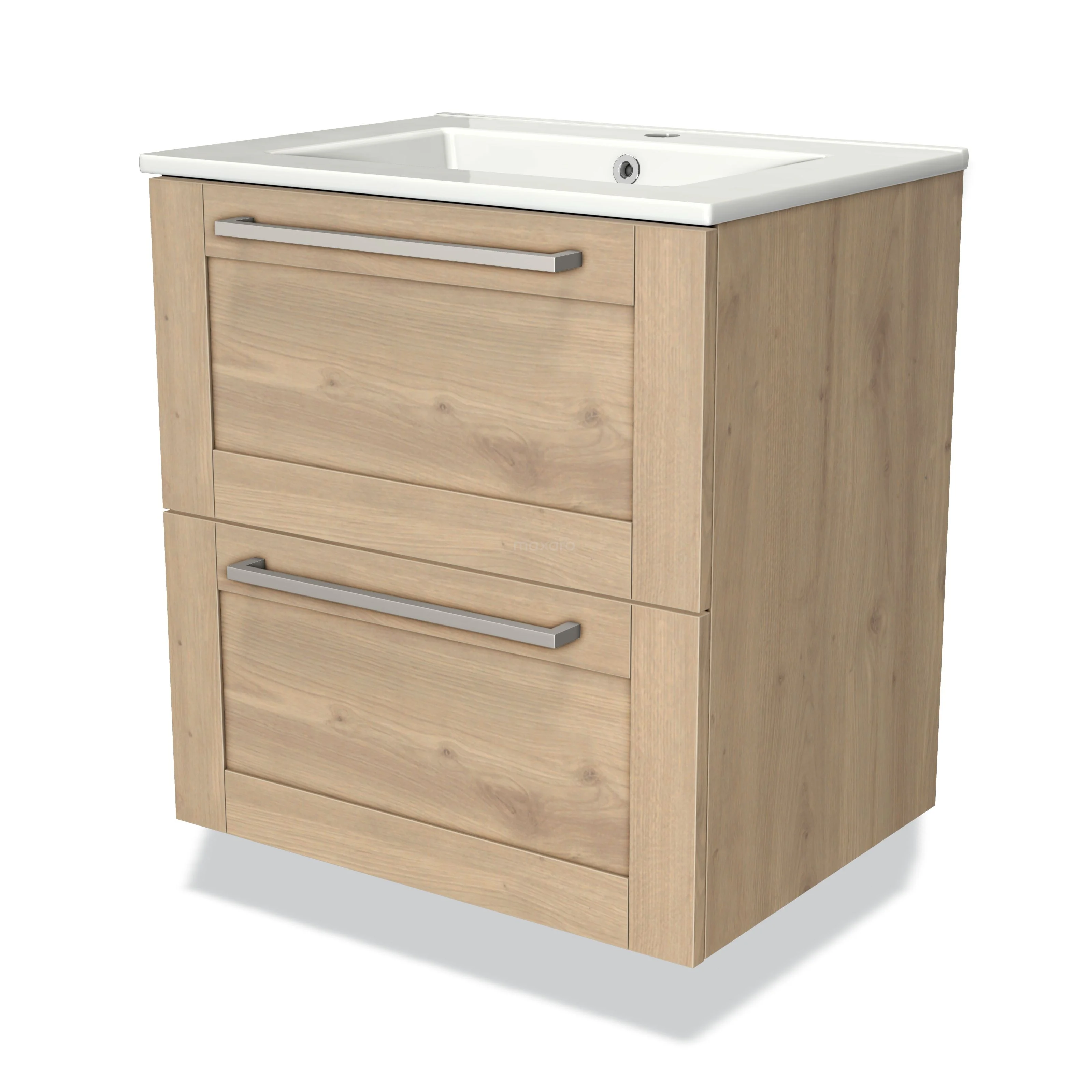 Modulo Bathroom furniture with sink | 60 cm Light brown oak Bordered front Ceramic 2 Stacked drawers
