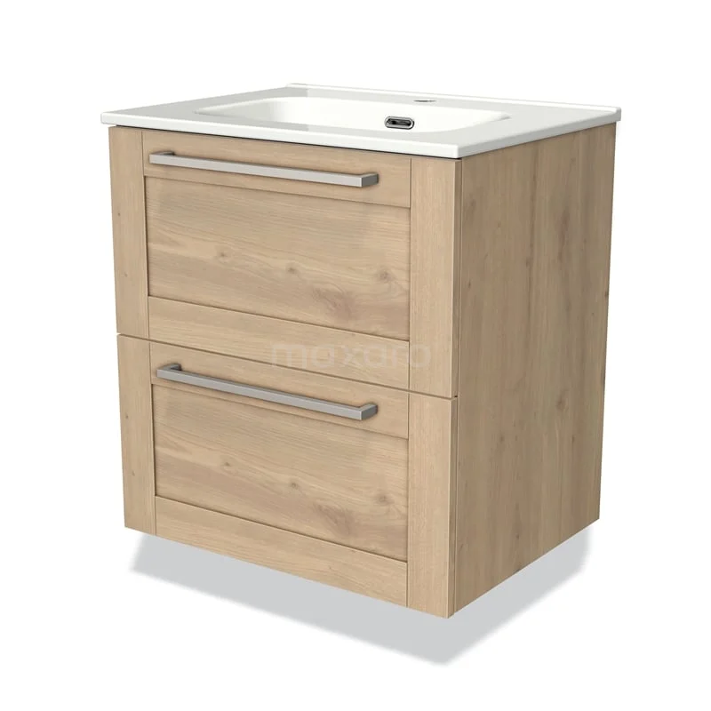 Modulo Bathroom furniture with sink | 60 cm Light brown oak Bordered front Ceramic 2 Stacked drawers