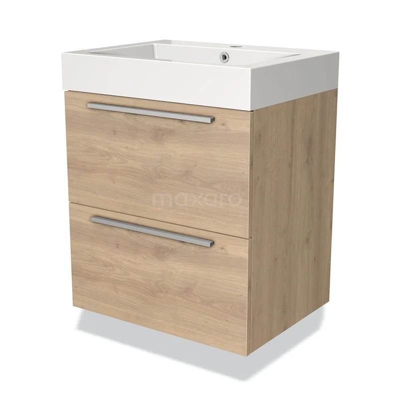 Stylish design The stylish design makes this bathroom unit the eye-catcher of your bathroom. The base cabinet features a flat front and has a light brown oak finish. This beautiful oak look creates a warm atmosphere in your bathroom interior. In addition, the flat front provides a timeless touch. You will need to joint the handles yourself. These are available in different colours and shapes.