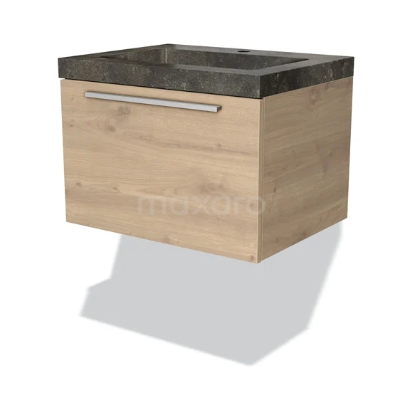 Modulo Bathroom furniture with sink | 60 cm Light brown oak Flat front Natural stone 1 drawer