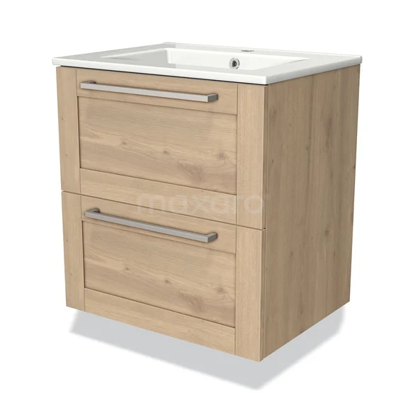 Modulo Bathroom furniture with sink | 60 cm Light brown oak Frame front Ceramic 2 Stacked drawers