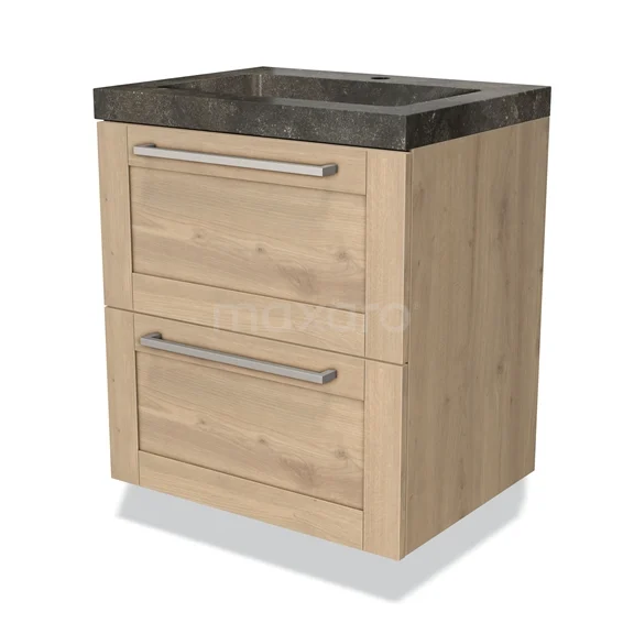 Modulo Bathroom furniture with sink | 60 cm Light brown oak Frame front Natural stone 2 Stacked drawers