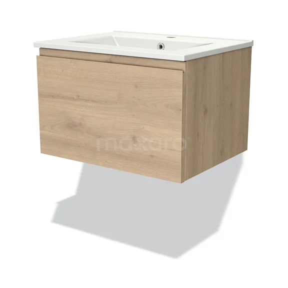 Modulo Bathroom furniture with sink | 60 cm Light brown oak Handle-less front Ceramic 1 drawer