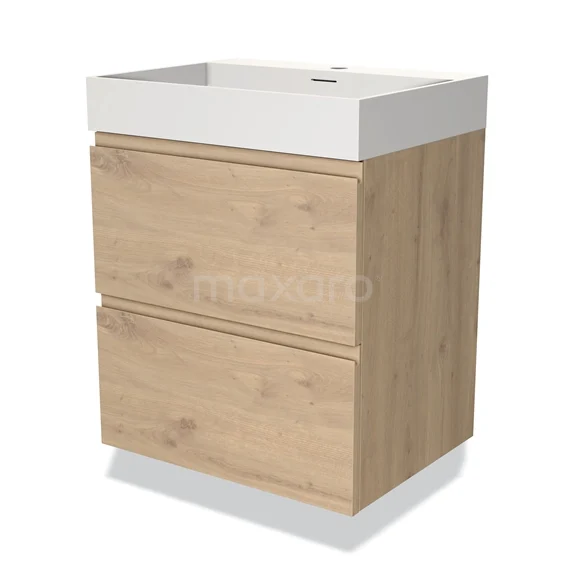 Modulo Bathroom furniture with sink | 60 cm Light brown oak Handle-less front Solid surface 2 Stacked drawers