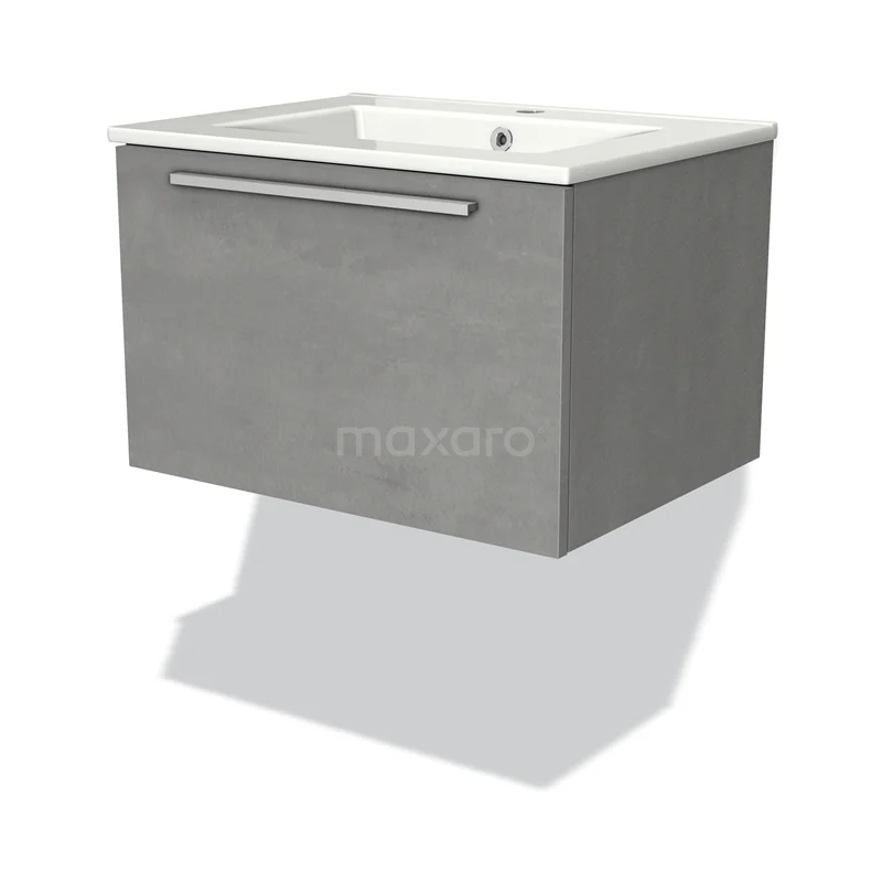 Modulo Bathroom furniture with sink | 60 cm Light grey concrete Flat front Ceramic 1 drawer