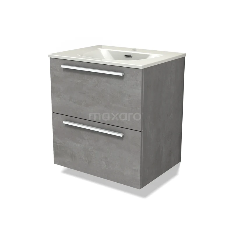 Modulo Bathroom furniture with sink | 60 cm Light grey concrete Flat front Ceramic 2 Stacked drawers