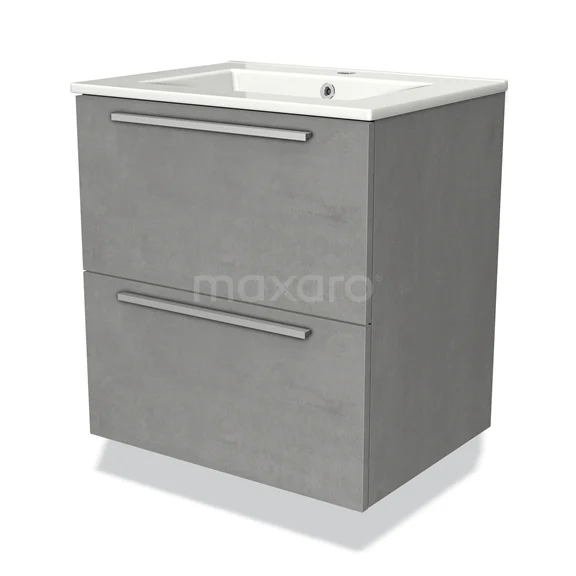 Modulo Bathroom furniture with sink | 60 cm Light grey concrete Flat front Ceramic 2 Stacked drawers