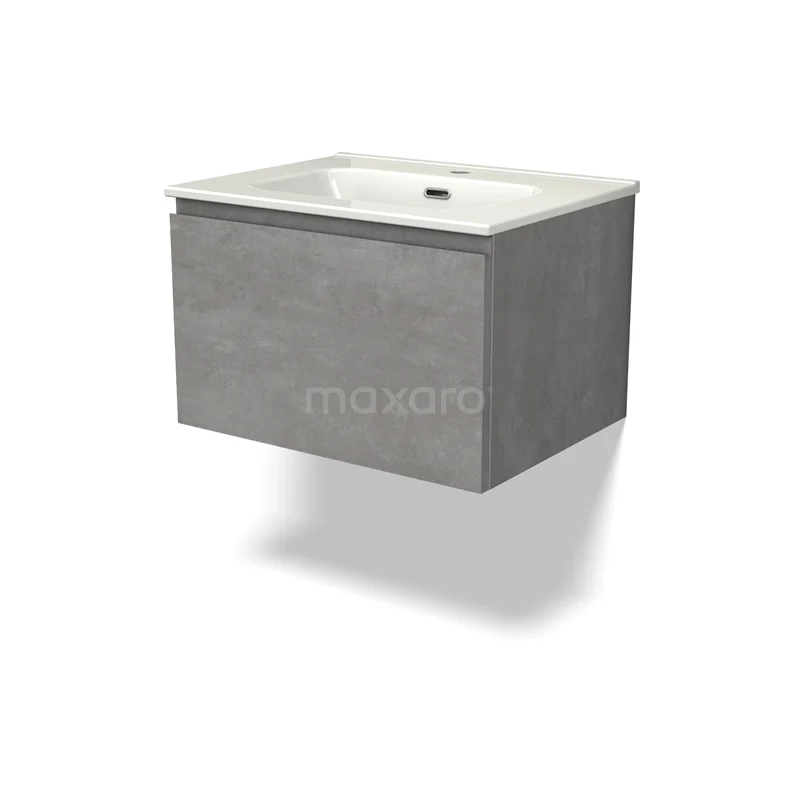 Modulo Bathroom furniture with sink | 60 cm Light grey concrete Handle-less front Ceramic 1 drawer