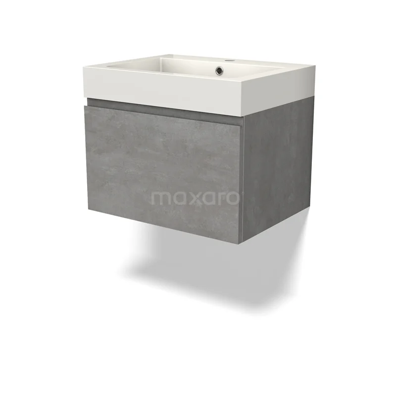 Modulo Bathroom furniture with sink | 60 cm Light grey concrete Handle-less front Mineral marble 1 drawer