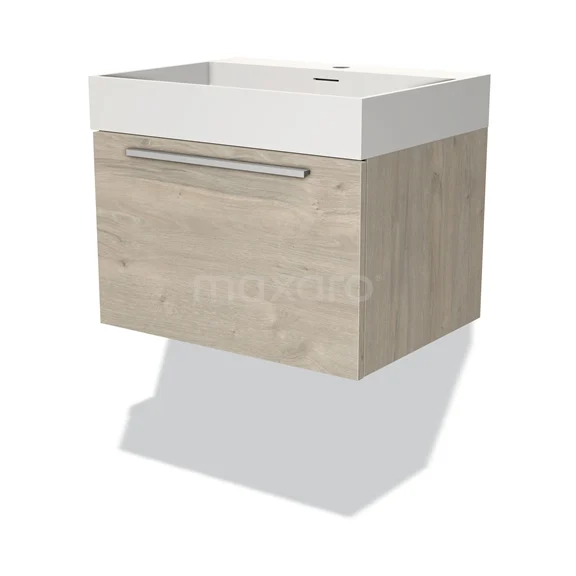 Modulo Bathroom furniture with sink | 60 cm Light grey oak Flat front Solid surface 1 drawer