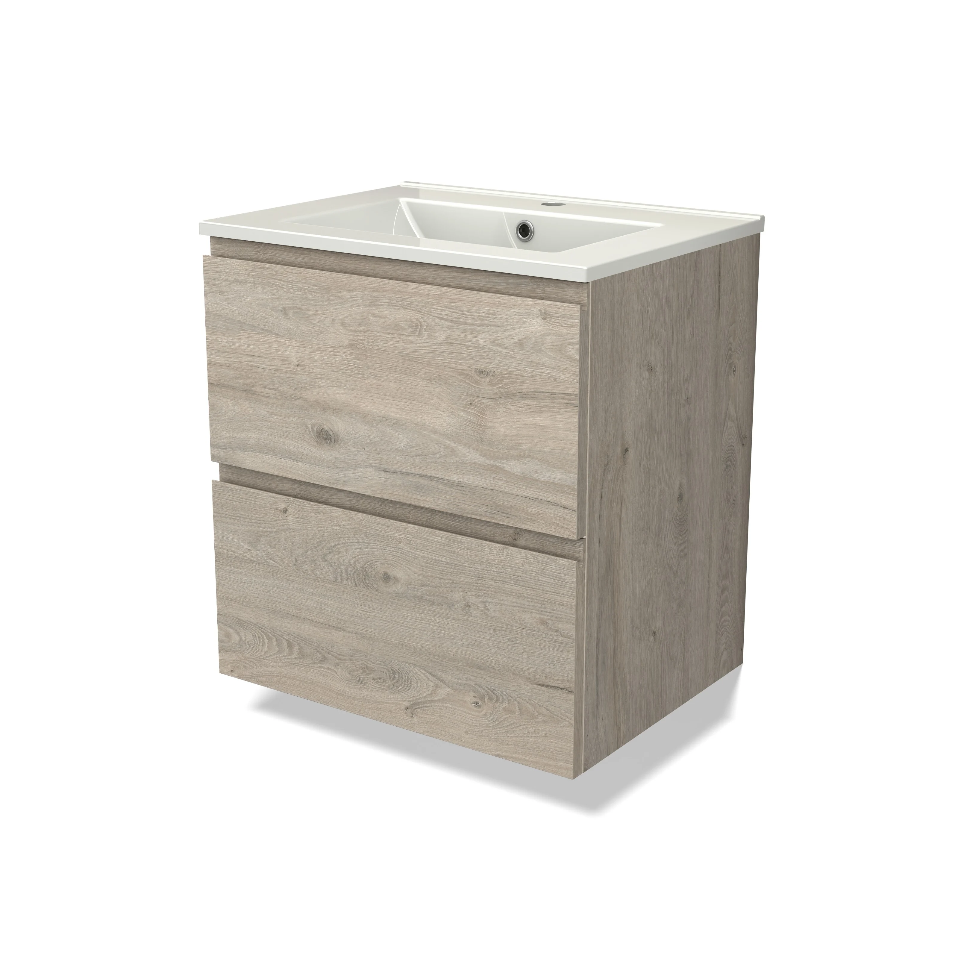 Modulo Bathroom furniture with sink | 60 cm Light grey oak Handle-less front Ceramic 2 Stacked drawers