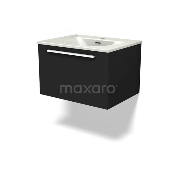 Modulo Bathroom furniture with sink | 60 cm Matte black Flat front Ceramic 1 drawer