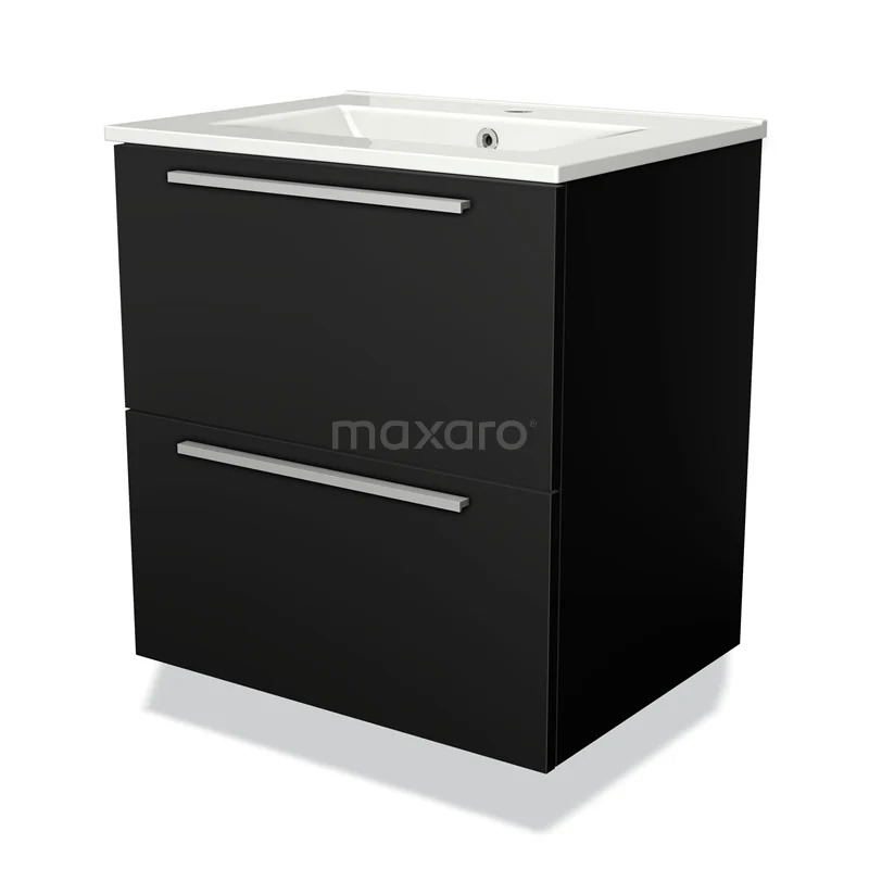 Modulo Bathroom furniture with sink | 60 cm Matte black Flat front Ceramic 2 Stacked drawers