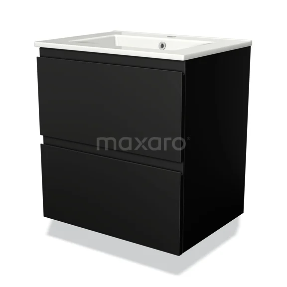 Modulo Bathroom furniture with sink | 60 cm Matte black Handle-less front Ceramic 2 Stacked drawers