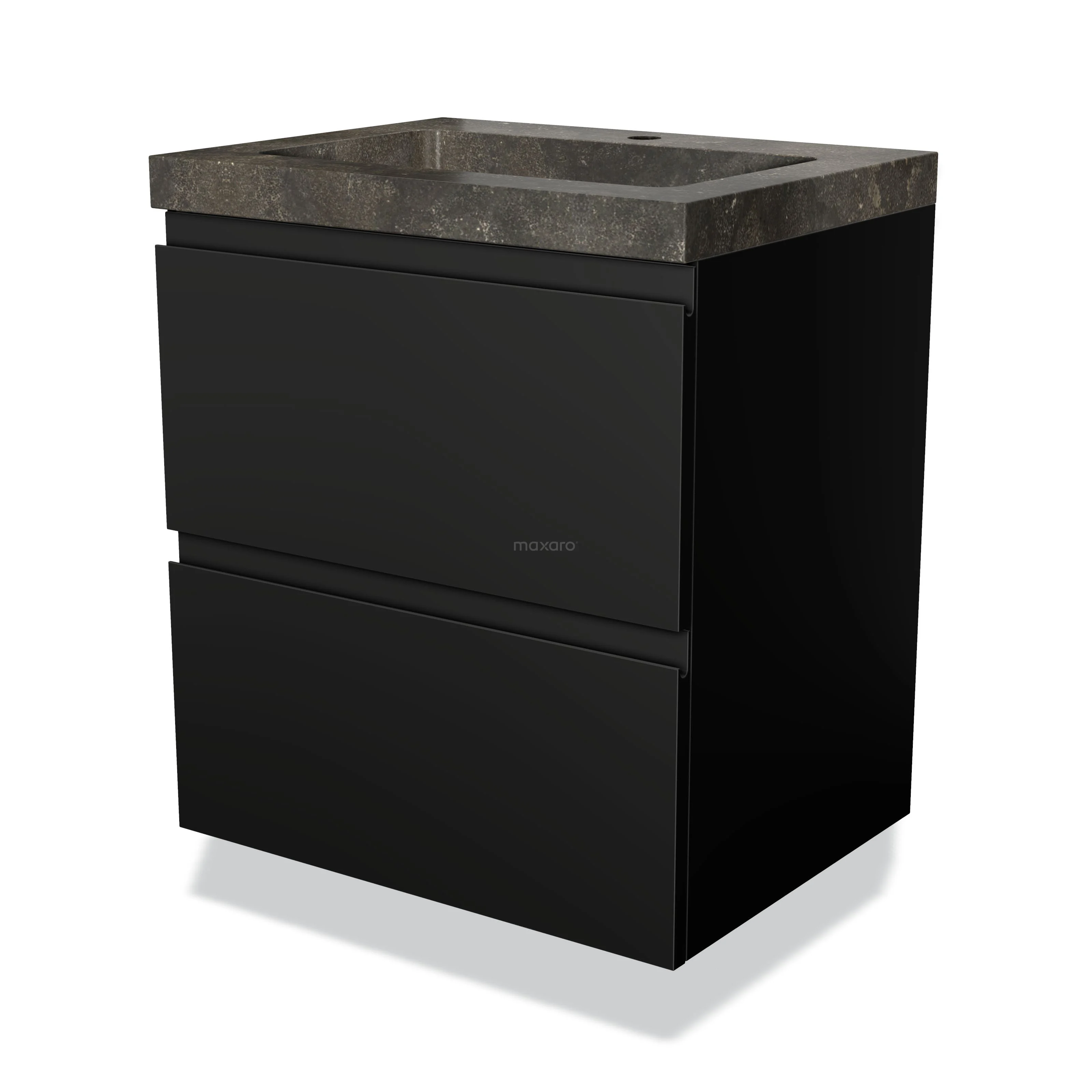 Modulo Bathroom furniture with sink | 60 cm Matte black Handle-less front Natural stone 2 Stacked drawers