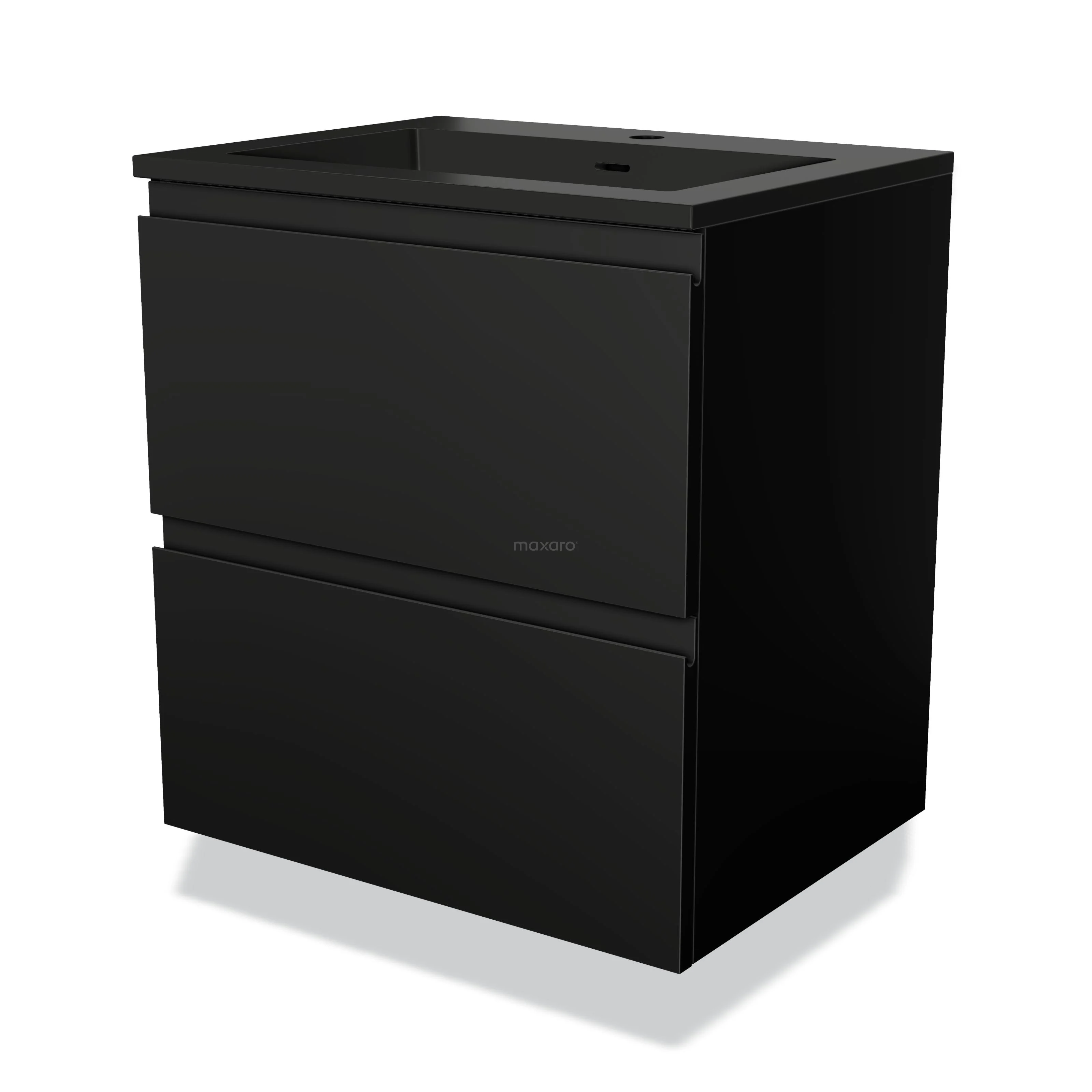 Modulo Bathroom furniture with sink | 60 cm Matte black Handle-less front Quartz 2 Stacked drawers