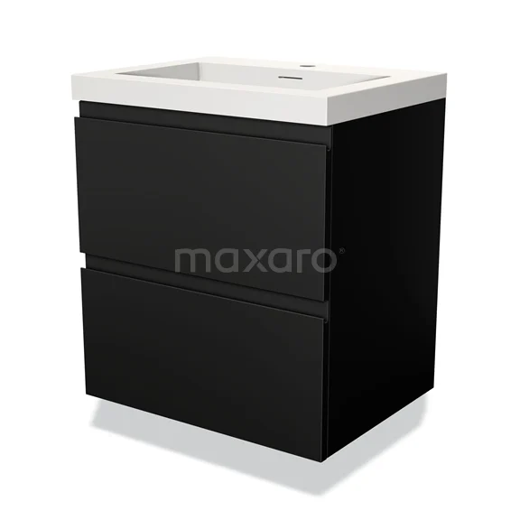 Modulo Bathroom furniture with sink | 60 cm Matte black Handle-less front Solid surface 2 Stacked drawers