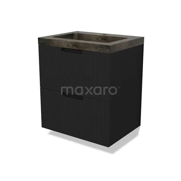 Modulo Bathroom furniture with sink | 60 cm Matte black Line front Natural stone 2 Stacked drawers
