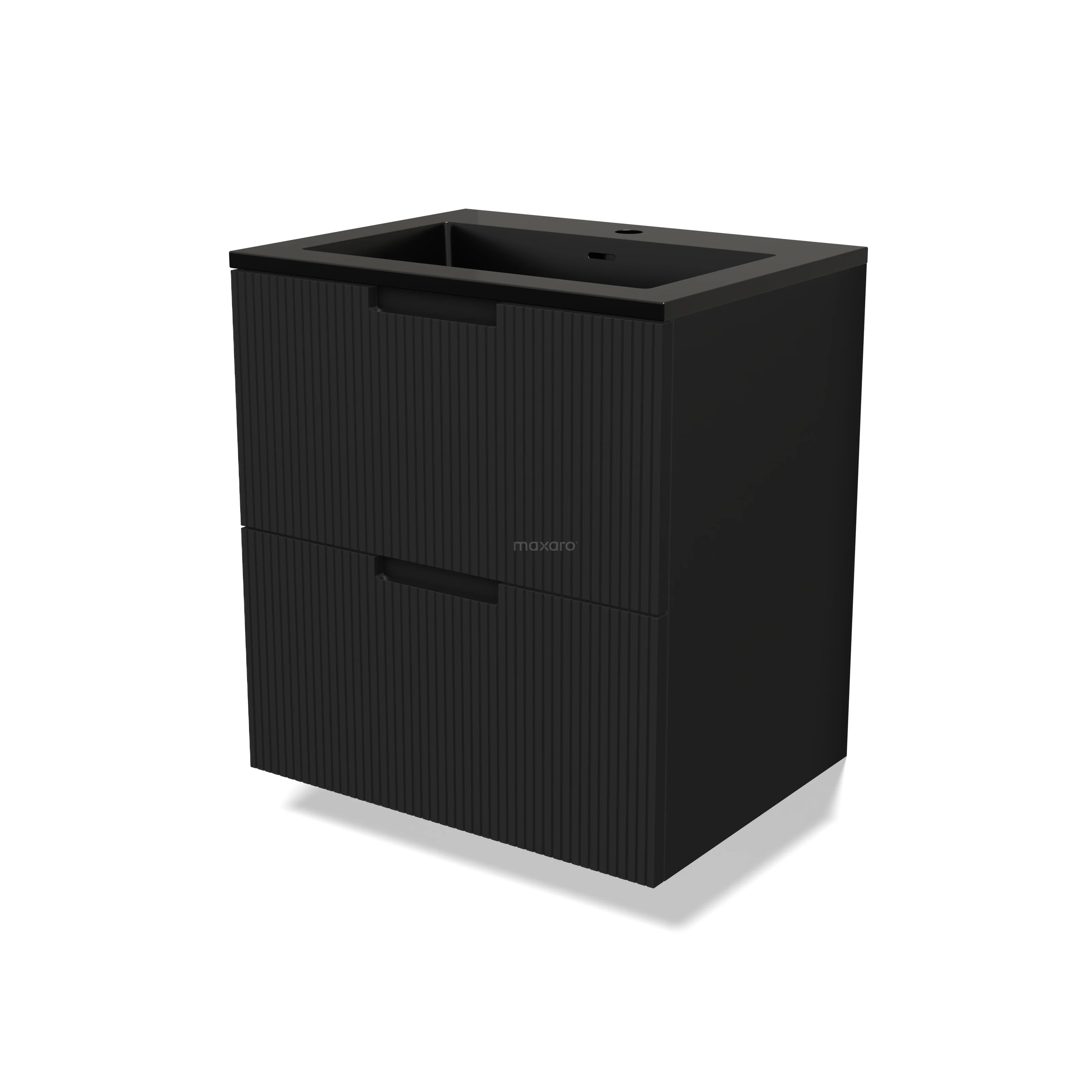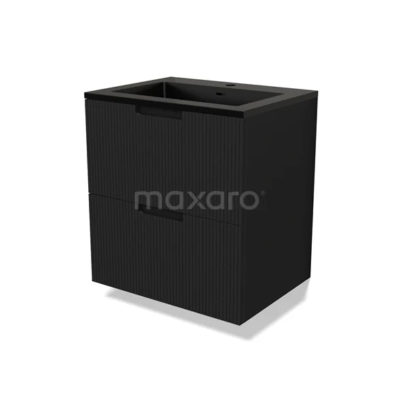 Modulo Bathroom furniture with sink | 60 cm Matte black Line front Quartz 2 Stacked drawers