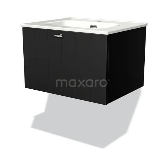 Modulo Bathroom furniture with sink | 60 cm Matte black Slat front Ceramic 1 drawer