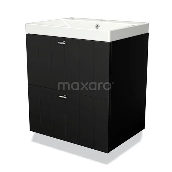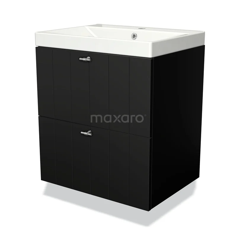 Modulo Bathroom furniture with sink | 60 cm Matte black Slat front Ceramic 2 Stacked drawers