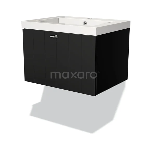 Modulo Bathroom furniture with sink | 60 cm Matte black Slat front Mineral marble 1 drawer