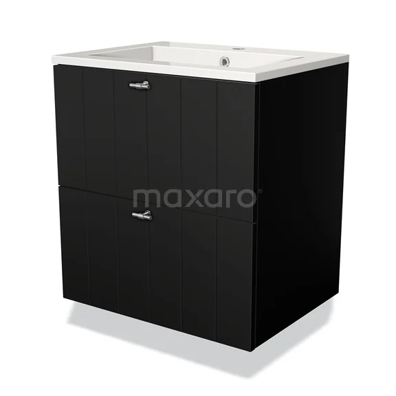 Modulo Bathroom furniture with sink | 60 cm Matte black Slat front Mineral marble 2 Stacked drawers