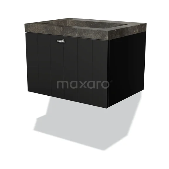 Modulo Bathroom furniture with sink | 60 cm Matte black Slat front Natural stone 1 drawer