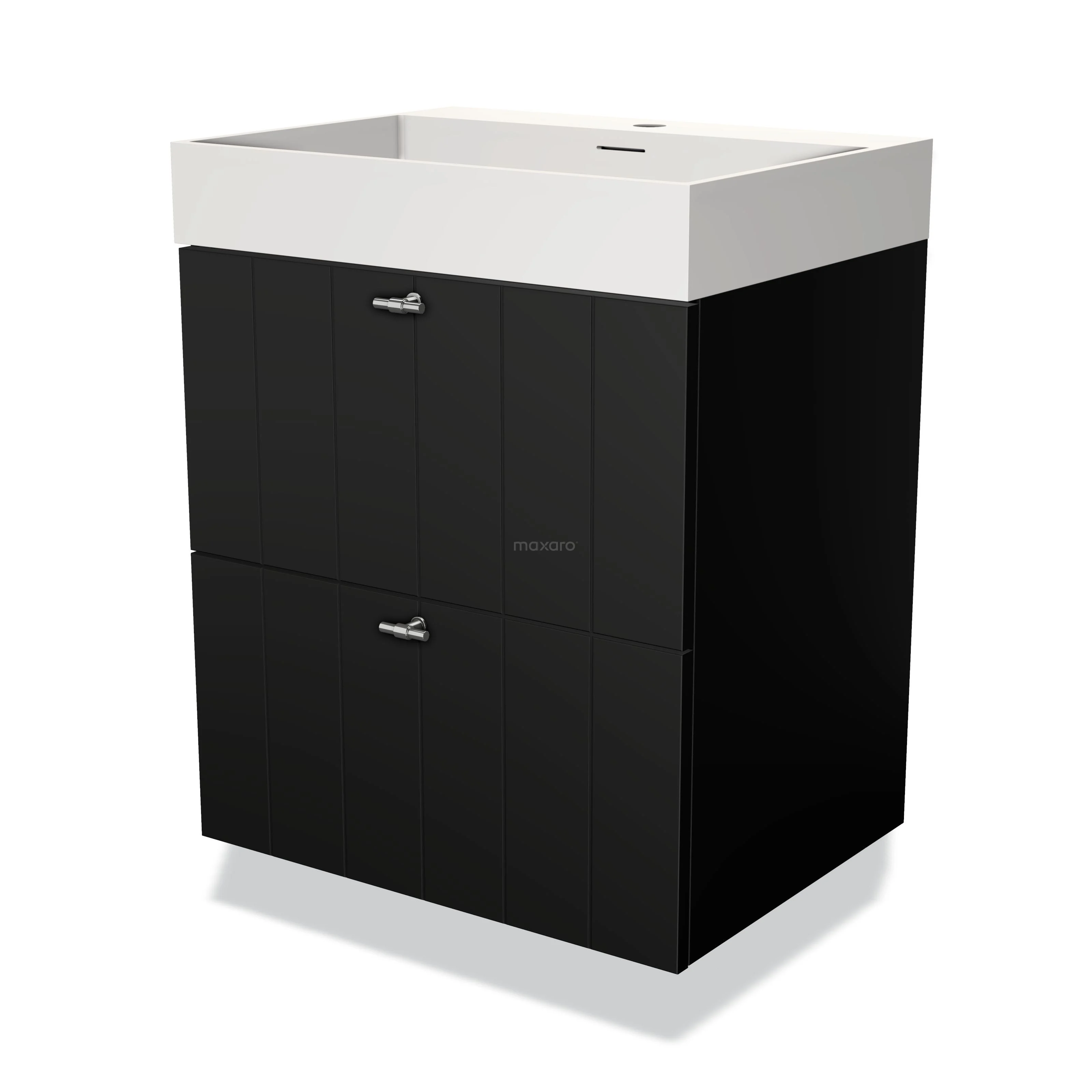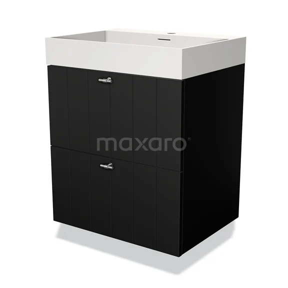 Modulo Bathroom furniture with sink | 60 cm Matte black Slat front Solid surface 2 Stacked drawers
