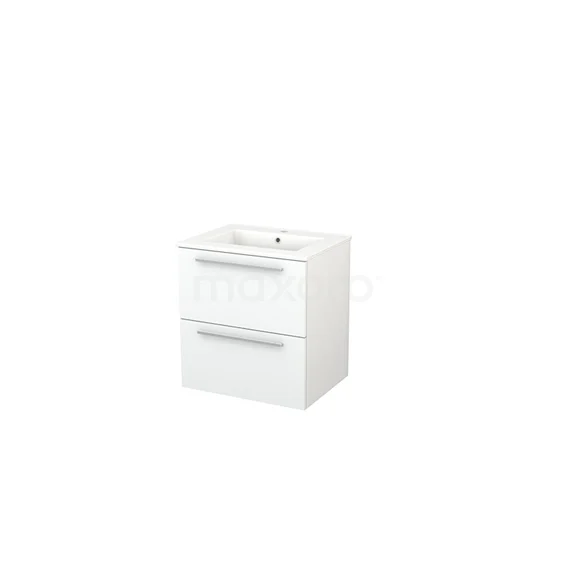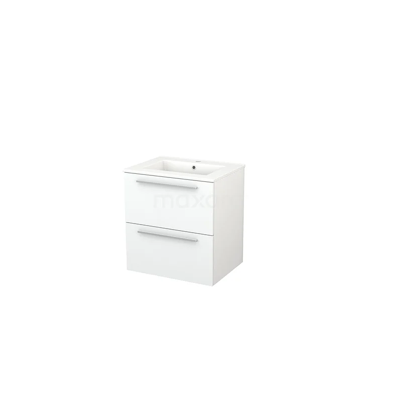 Modulo+ Bathroom furniture with sink | 60 cm Matte white Flat front Ceramic 2 Stacked drawers