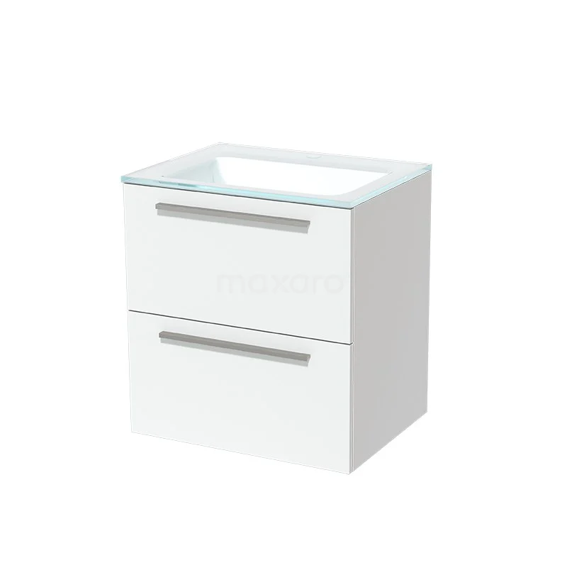 Modulo Bathroom furniture with sink | 60 cm Matte white Flat front Glass 2 Stacked drawers
