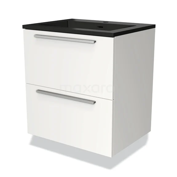 Modulo Bathroom furniture with sink | 60 cm Matte white Flat front Quartz 2 Stacked drawers