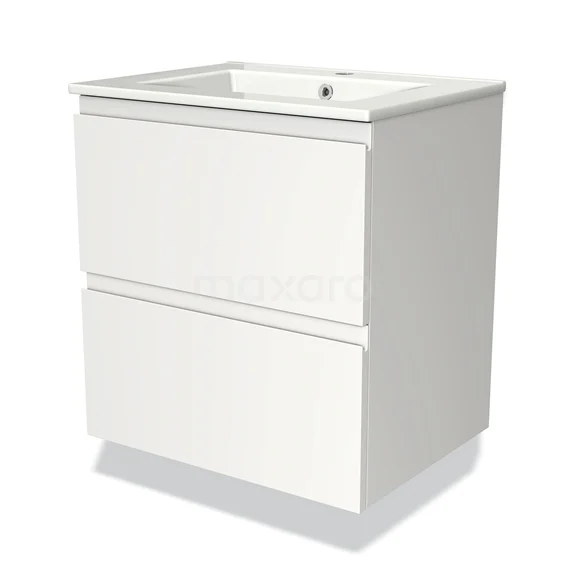 Modulo Bathroom furniture with sink | 60 cm Matte white Handle-less front Ceramic 2 Stacked drawers