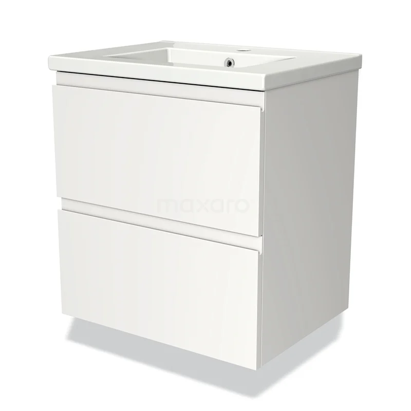 Modulo Bathroom furniture with sink | 60 cm Matte white Handle-less front Ceramic 2 Stacked drawers
