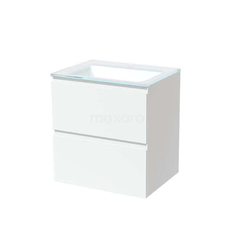 Modulo Bathroom furniture with sink | 60 cm Matte white Handle-less front Glass 2 Stacked drawers