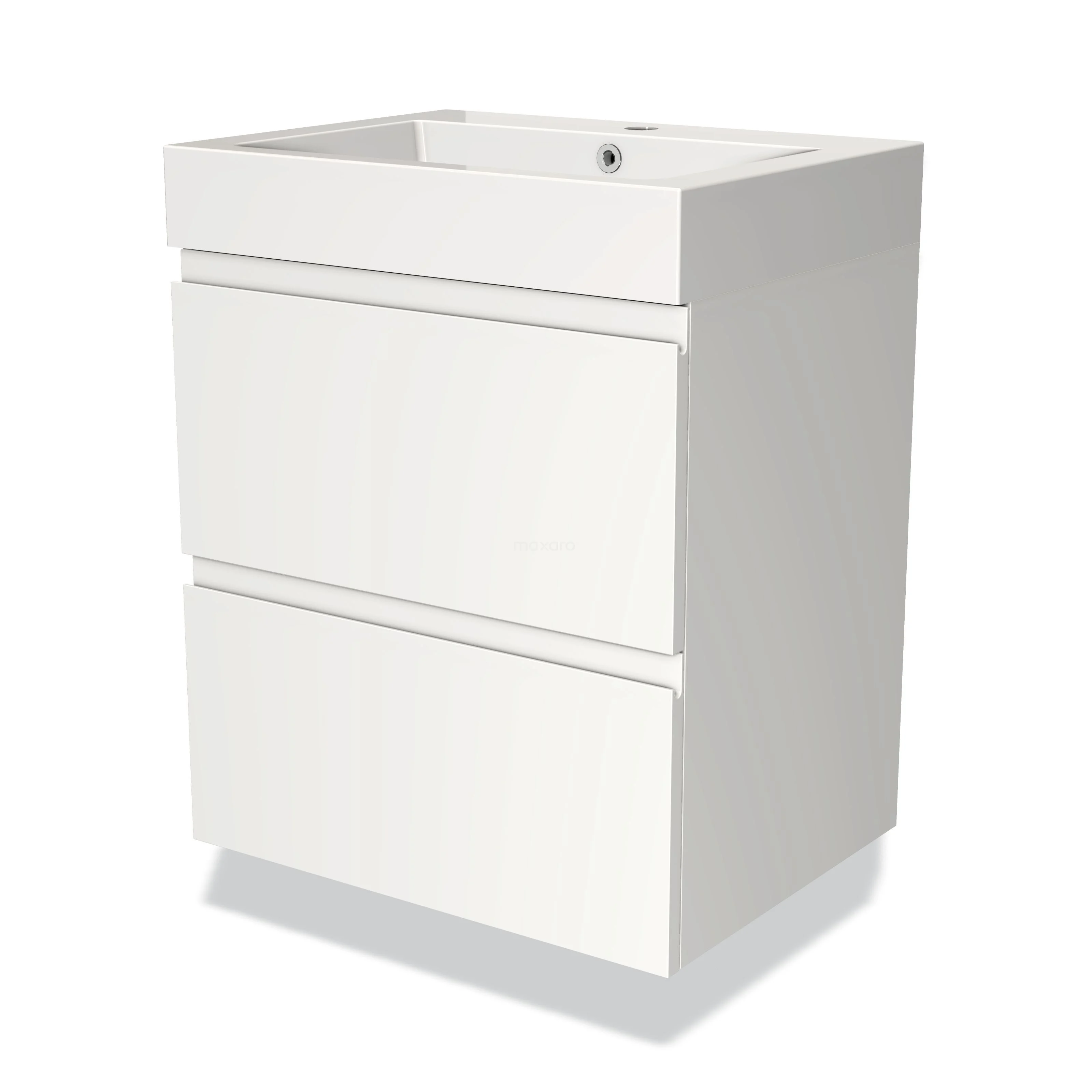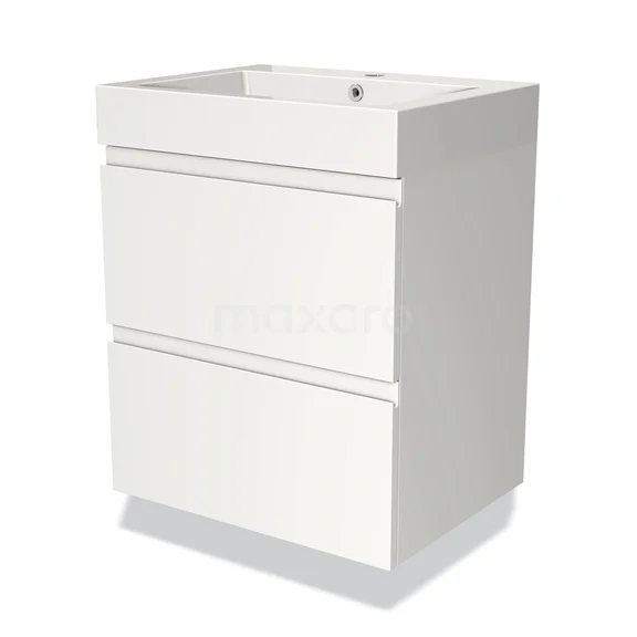 Modulo Bathroom furniture with sink | 60 cm Matte white Handle-less front Mineral marble 2 Stacked drawers