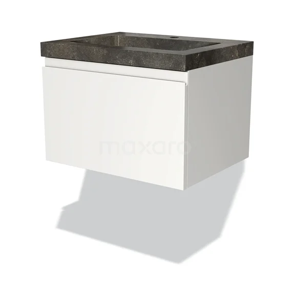 Modulo Bathroom furniture with sink | 60 cm Matte white Handle-less front Natural stone 1 drawer