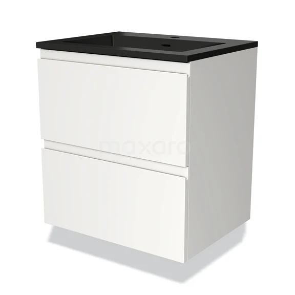 Modulo Bathroom furniture with sink | 60 cm Matte white Handle-less front Quartz 2 Stacked drawers