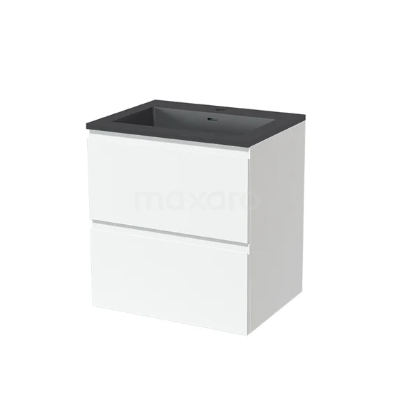 Modulo Bathroom furniture with sink | 60 cm Matte white Handle-less front Quartz 2 Stacked drawers